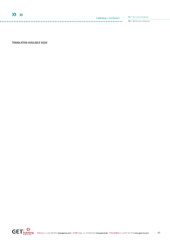 » » Continuação / Continuation 13 | Técnicos Industriais 13 | Technicians (Industry) TRANSLATION AVAILABLE SOON ANGOLA +244 225 400 399 | www.get-ao.com ∙ PORTUGAL +351 244 820 630 | www.get-pt.pt ∙ MOÇAMBIQUE +258 857 367 374 | www.get-mz.com 49