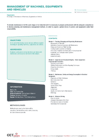 knowledge in operating machinery, equipments and vehicles. - Information Systems Associated with Maintenance