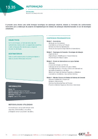 O presente curso oferece uma sólida formação tecnológica em automação industrial, dotando os formandos dos conhecimentos