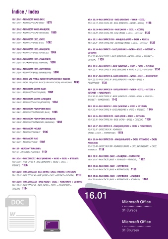 16.01.02.01 - MICROSOFT EXCEL (BASE) 1082 16.01.20.21 - PACK OFFICE XVIII - ADVANCED (WORD + EXCEL + ACCESS) 1126