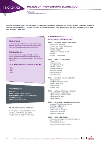 PowerPoint no que toca a conteúdos mais avançados.