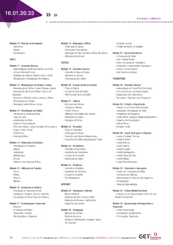 Módulo 12 - Manipulação de Células e Folhas Módulo 20 - Criação de Base de dados Módulo 28 - Conceitos Básicos