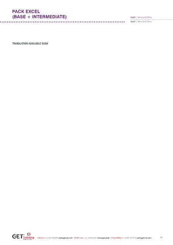 PACK EXCEL (BASE + INTERMEDIATE) 16.01 | Microsoft Office 16.01 | Microsoft Office TRANSLATION AVAILABLE SOON ANGOLA +244 225 400 399 | www.get-ao.com ∙ PORTUGAL +351 244 820 630 | www.get-pt.pt ∙ MOÇAMBIQUE +258 857 367 374 | www.get-mz.com 91