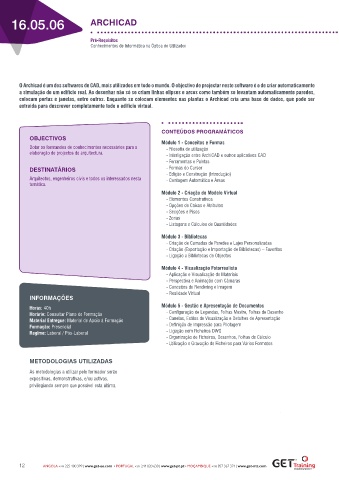 colocam portas e janelas, entre outros. Enquanto se colocam elementos nas plantas o Archicad cria uma base de dados, que pode ser