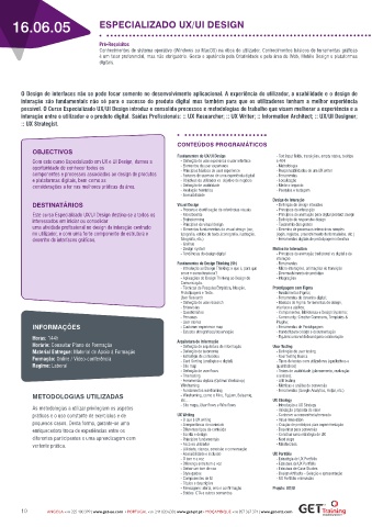 possível. O Curso Especializado UX/UI Design introduz e consolida processos e metodologias de trabalho que visam melhorar a experiência e a