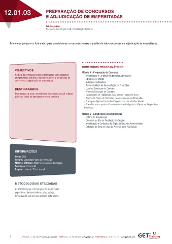 Este curso prepara os formandos para candidaturas a concursos e para a gestão de todo o processo de adjudicação de empreitadas.