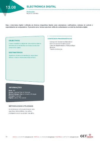 especialmente em computadores. O presente curso, fornece uma base sólida de conhecimentos ao nível da electrónica digital.