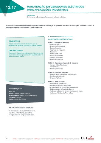 No presente curso serão apresentados os procedimentos de manutenção de geradores utilizados em instalações industriais, visando a